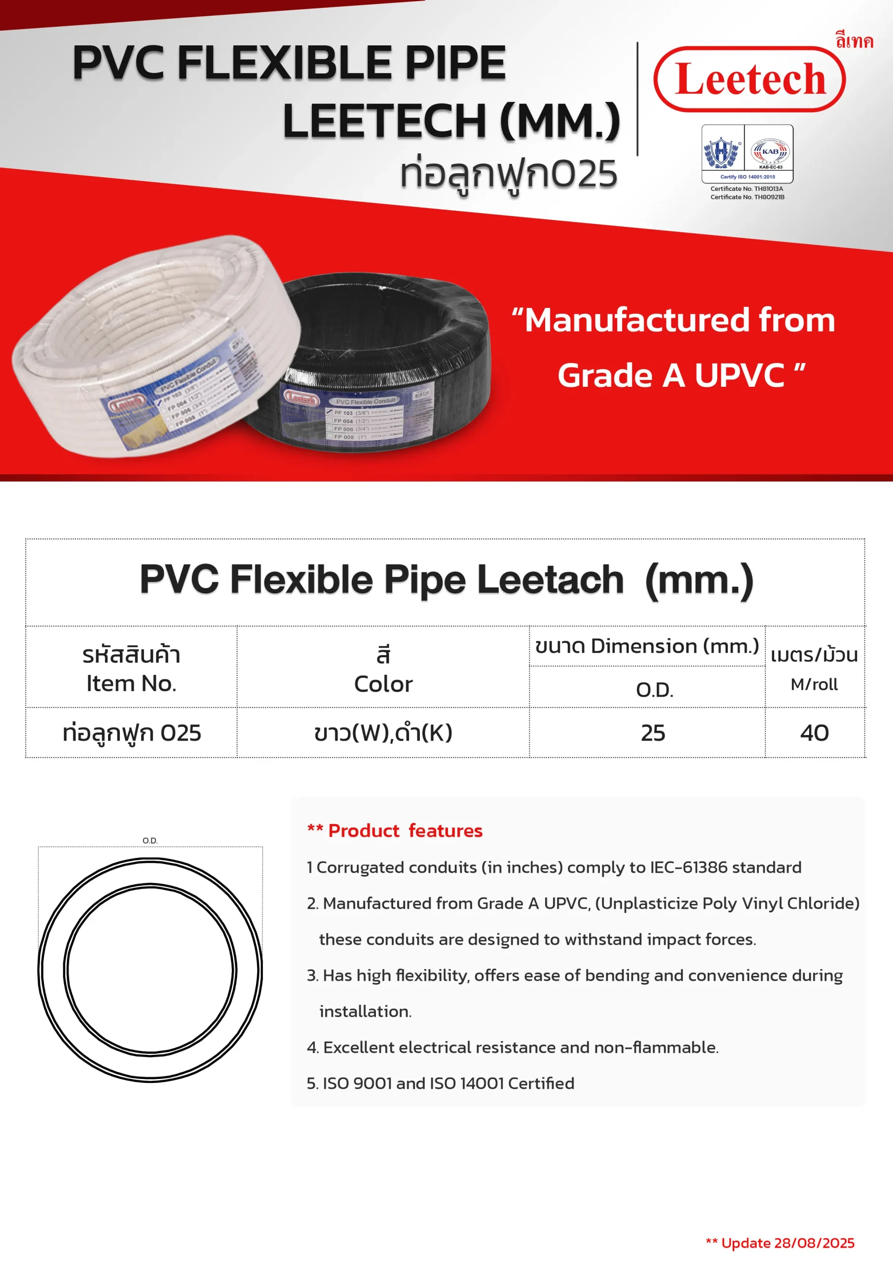 Home / ผลิตภัณฑ์ / Conduit Pipes and Pipe Fittings / PVC Flexible Pipe (mm.)(PF)