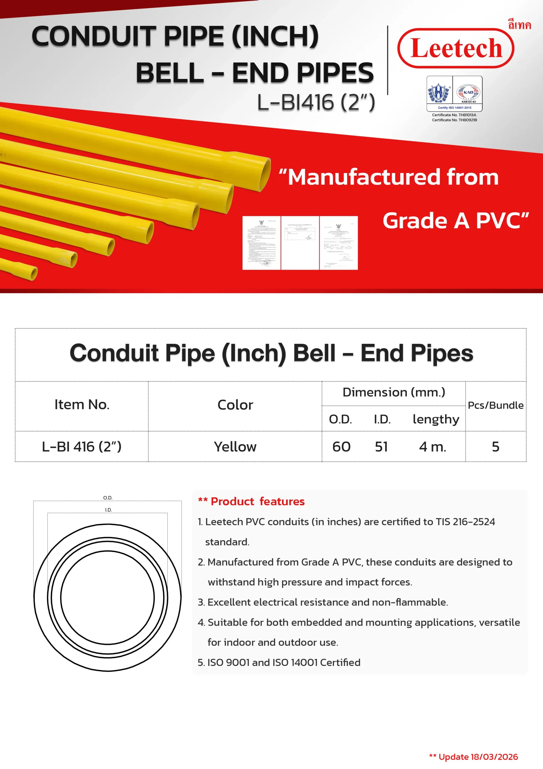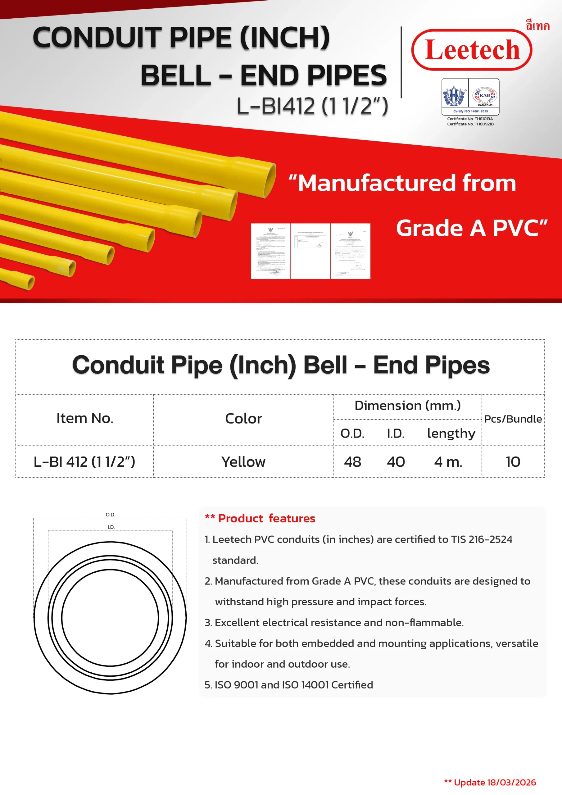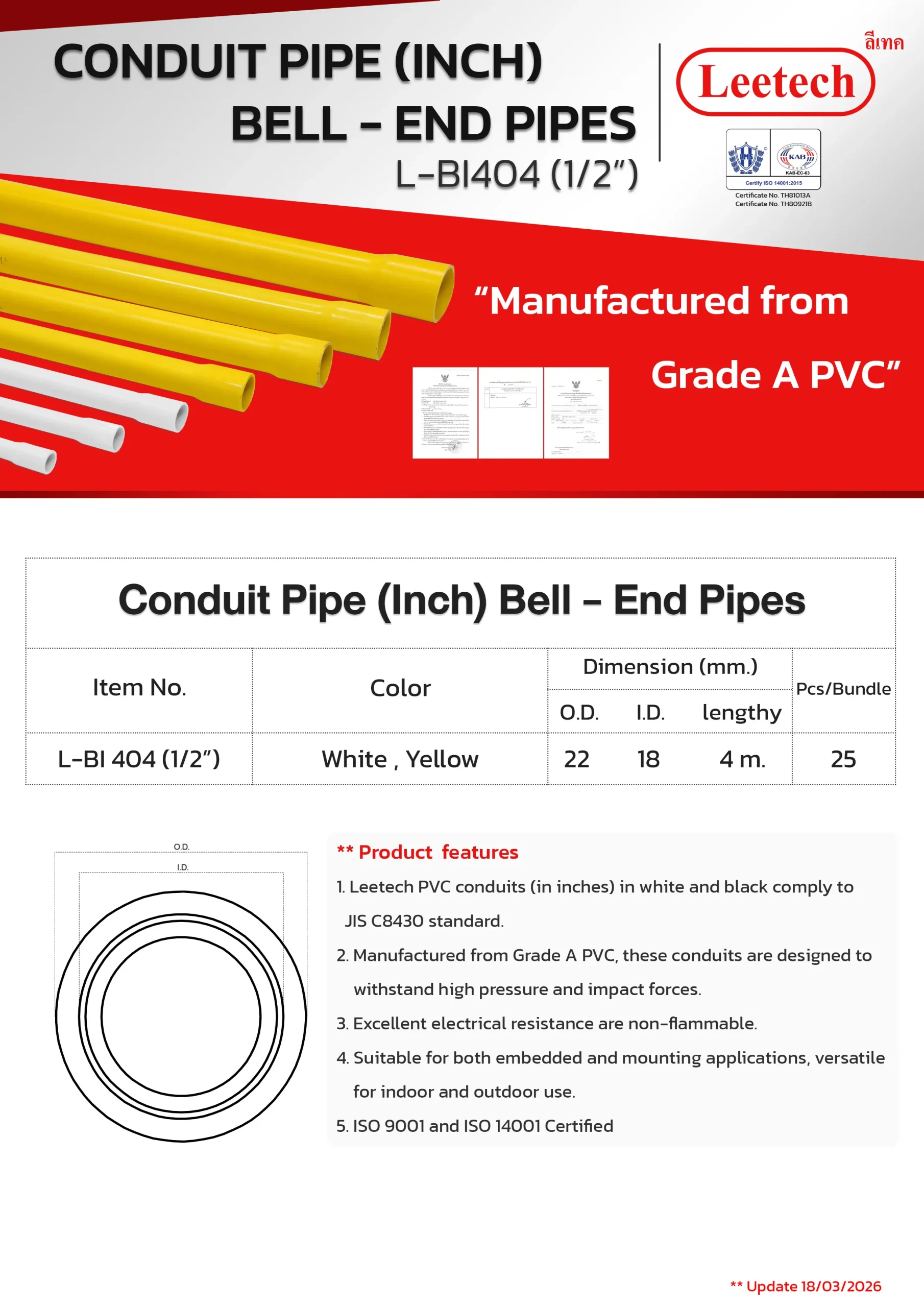 The Leetech PVC Conduit is produced from high-quality PVC plastic, offering robust resistance to impact, heat, electrical currents, and degradation. It is designed for both embedded and surface-mounted applications, ensuring versatility and durability in various environments.