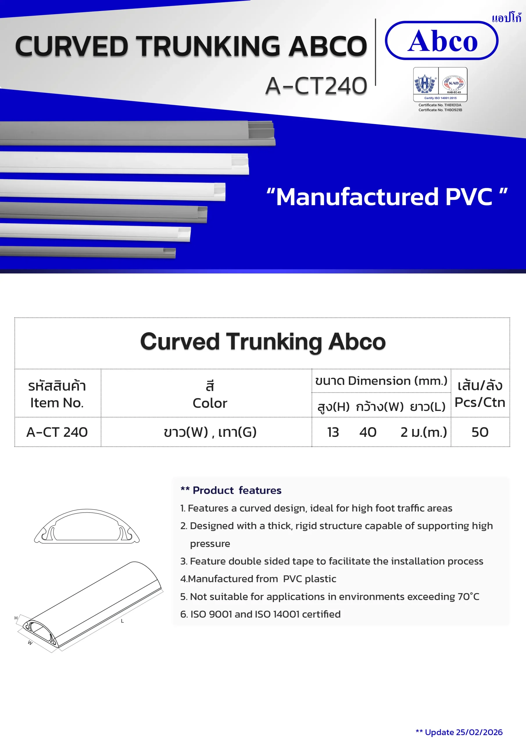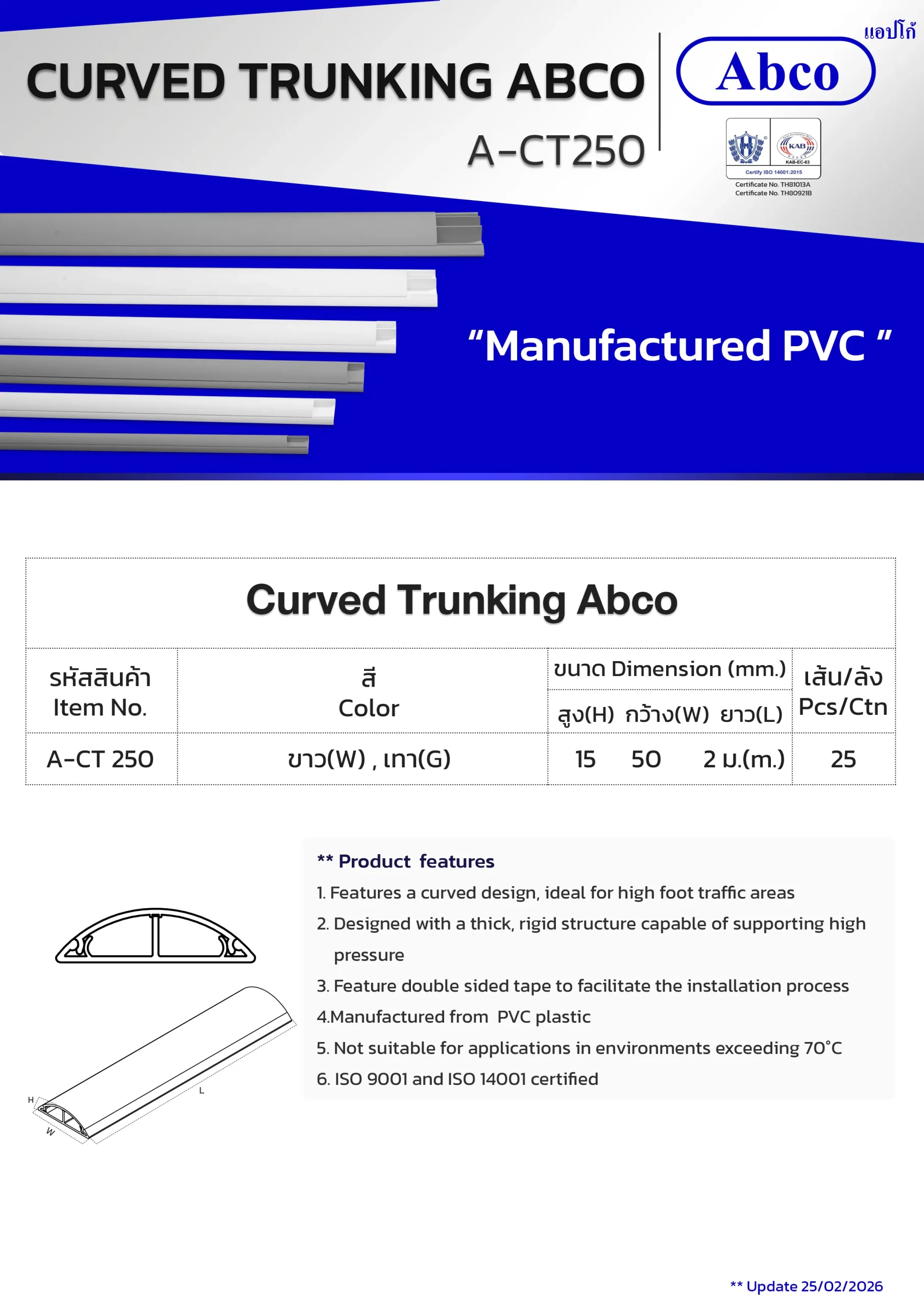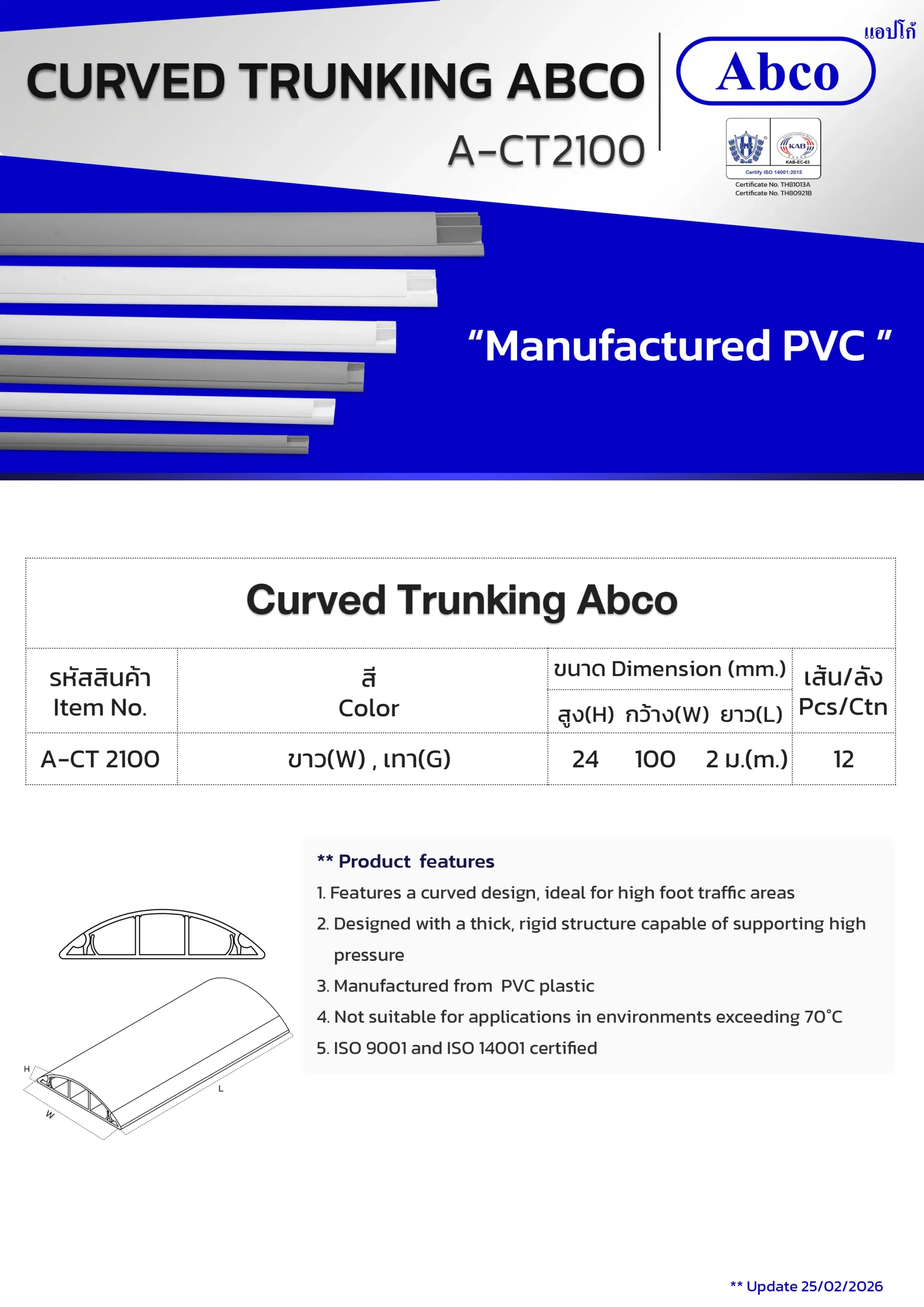 Home / ผลิตภัณฑ์ / PVC Cable Trunking and Equipment / Curved Trunking Abco (CT)