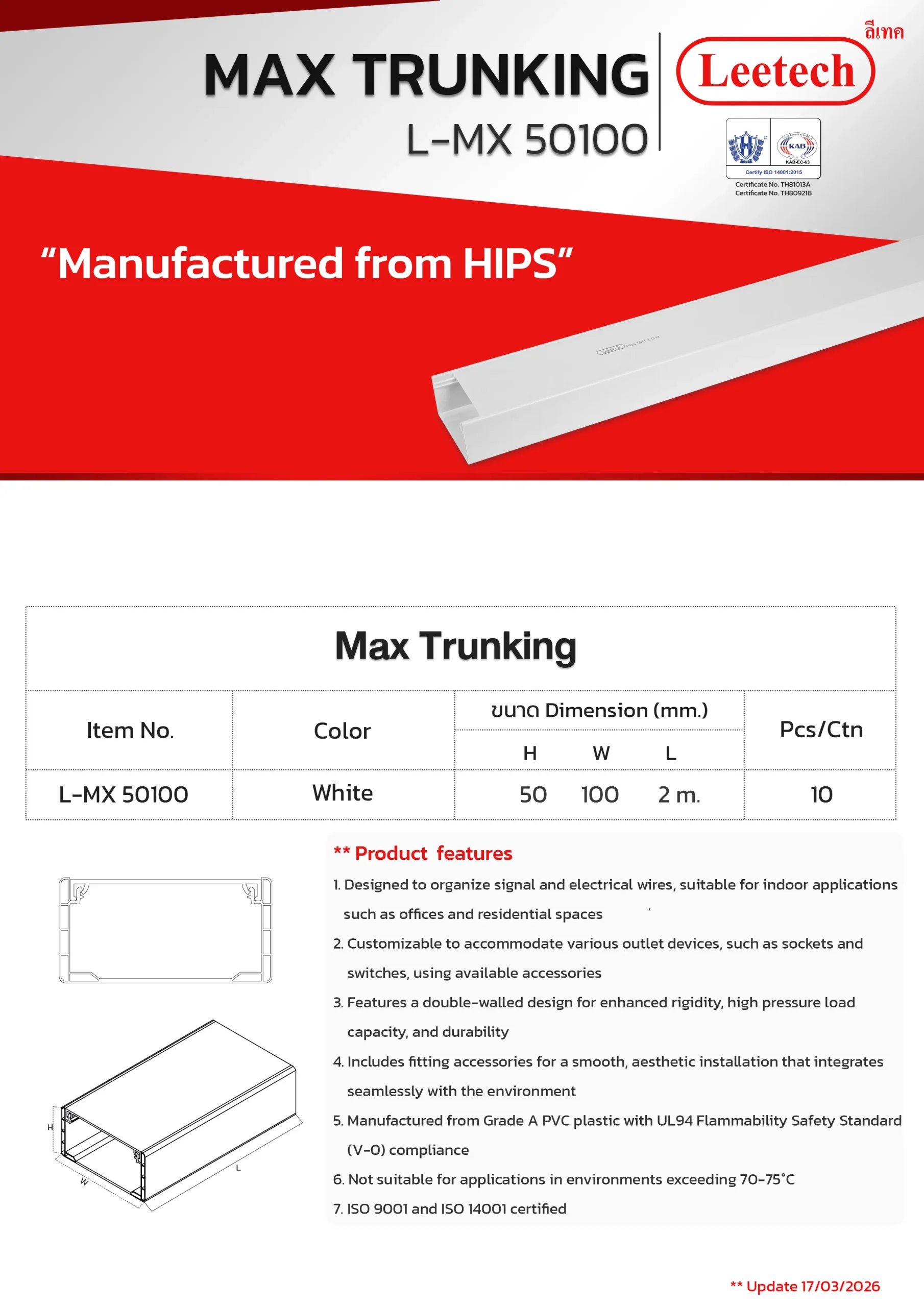 Home / ผลิตภัณฑ์ / PVC Cable Trunking and Equipment / Maxi Trunking (MX)
