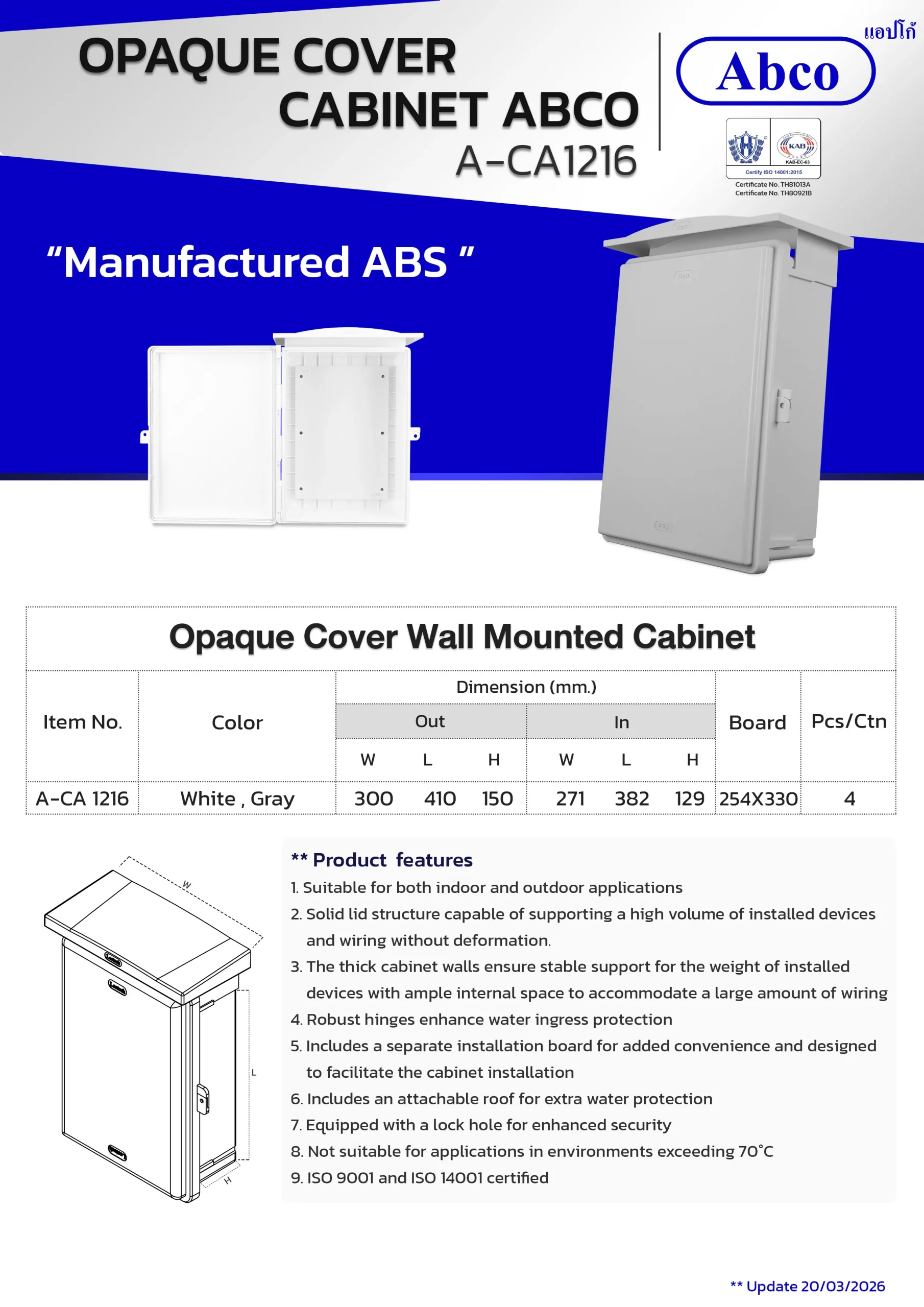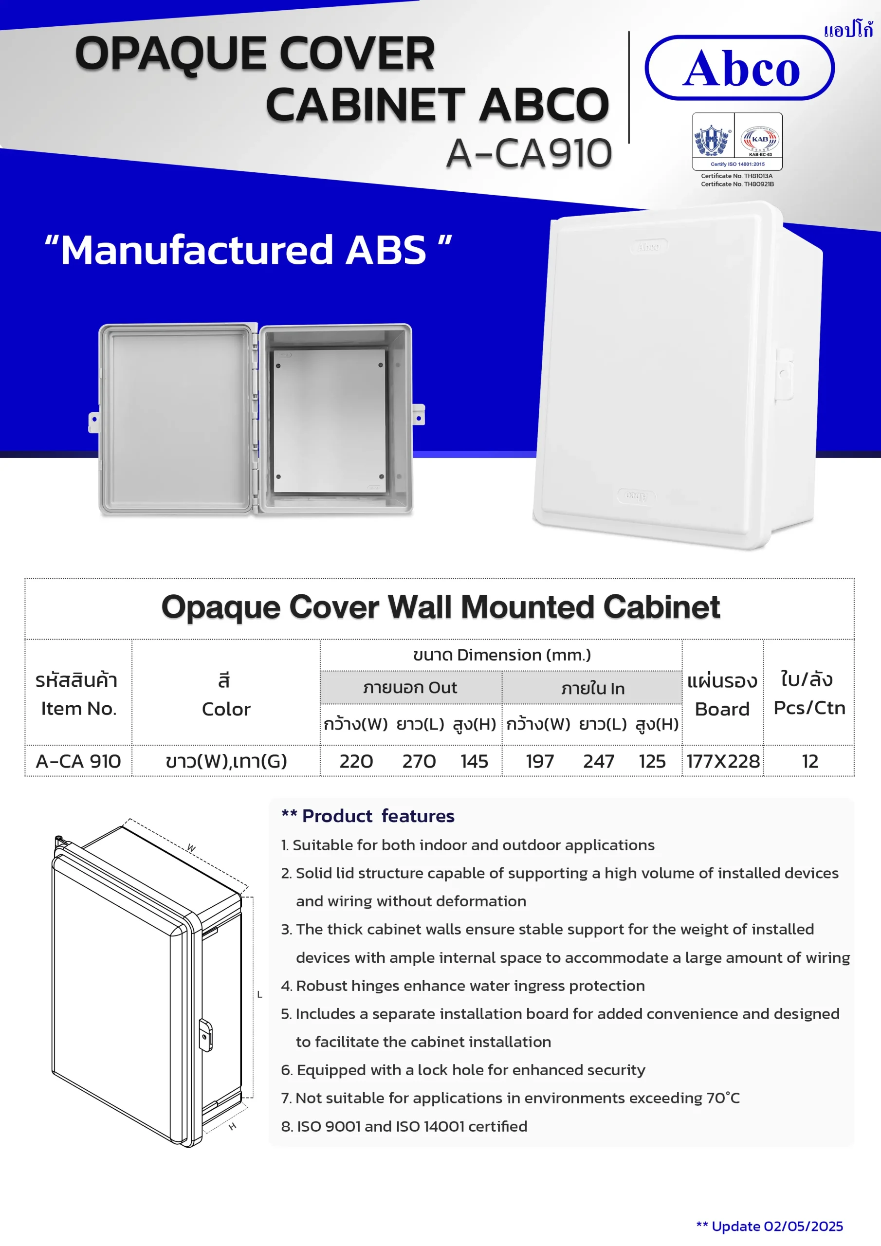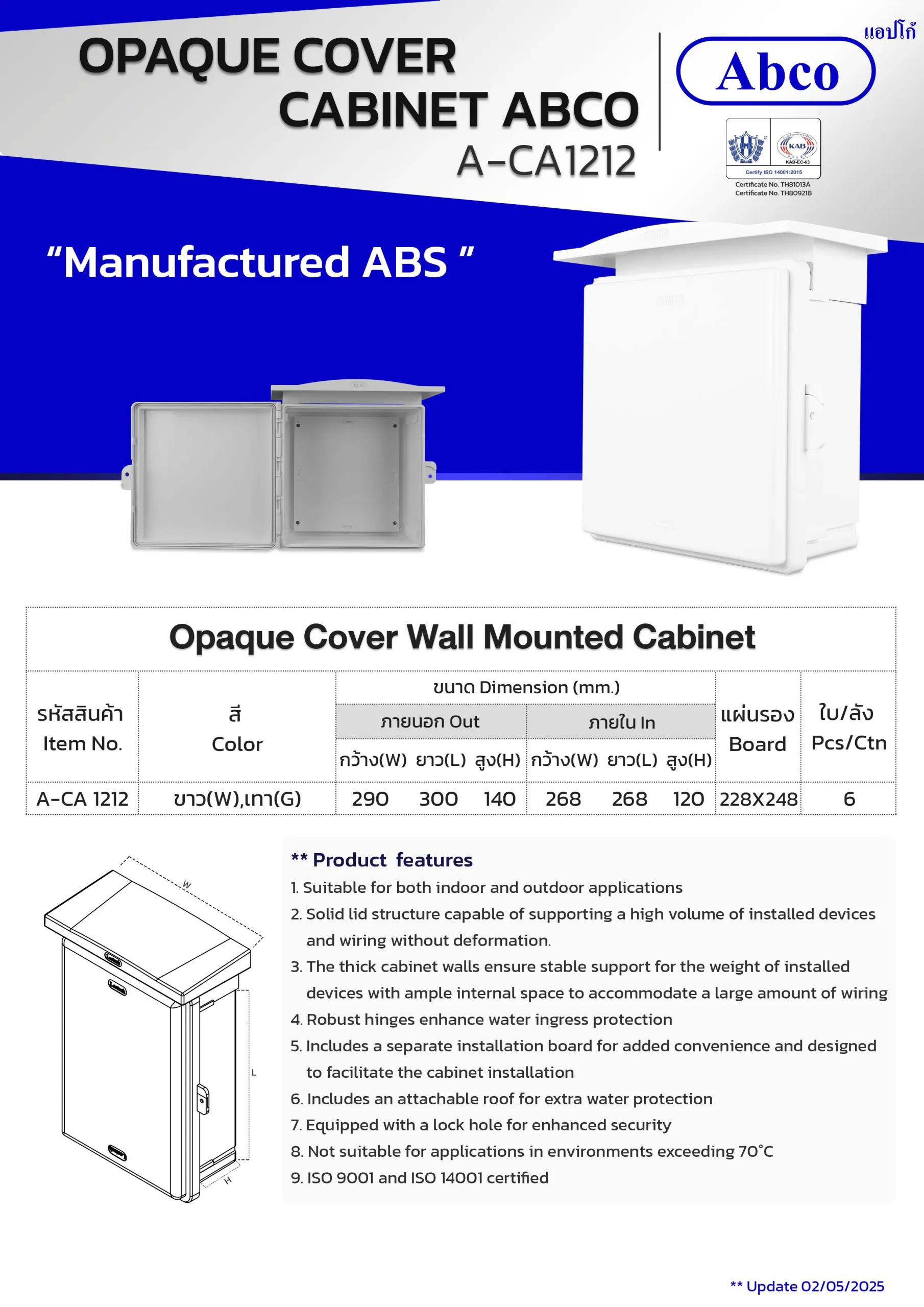 Home / ผลิตภัณฑ์ / Wall Mounted Cabinet / Opaque Cover wall Mounted Cabinet Abco (CA)