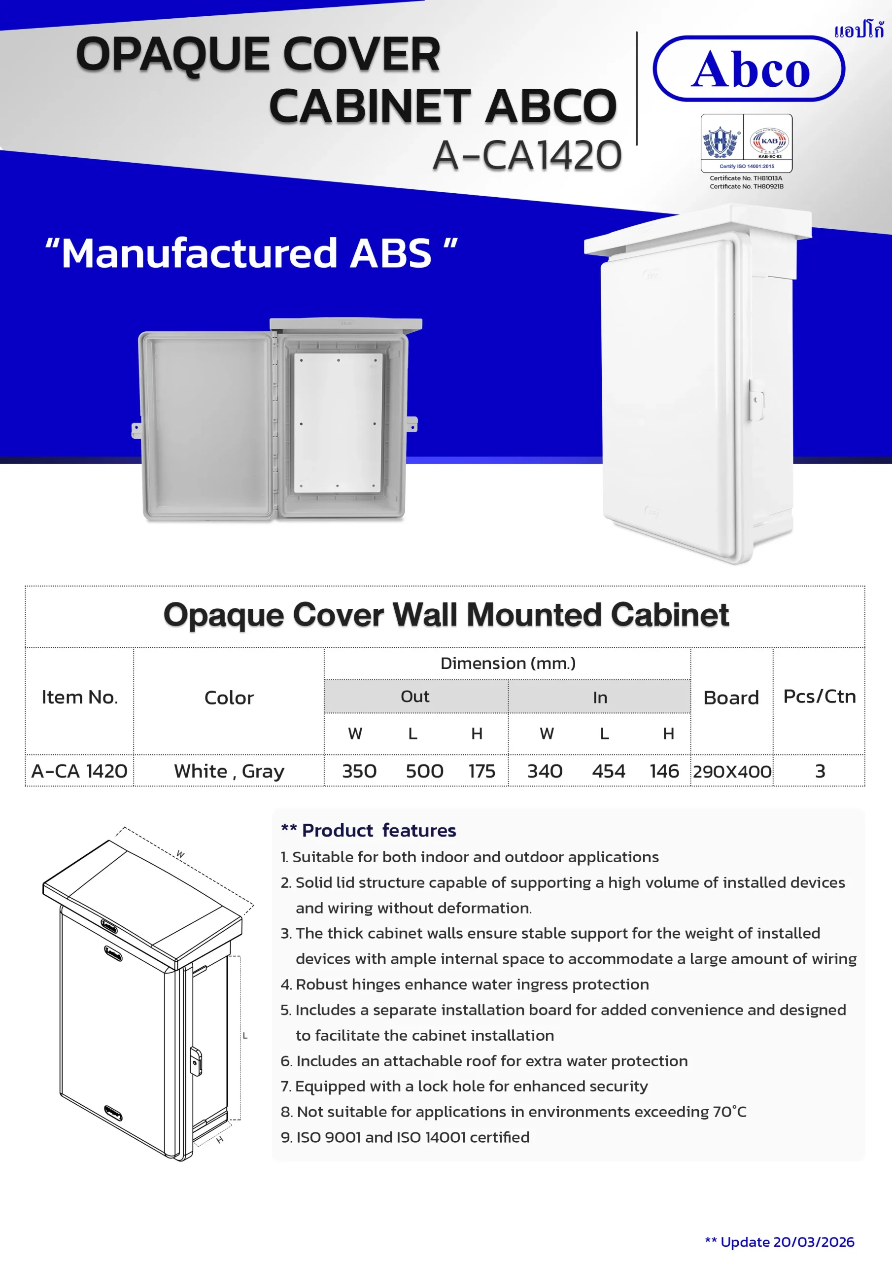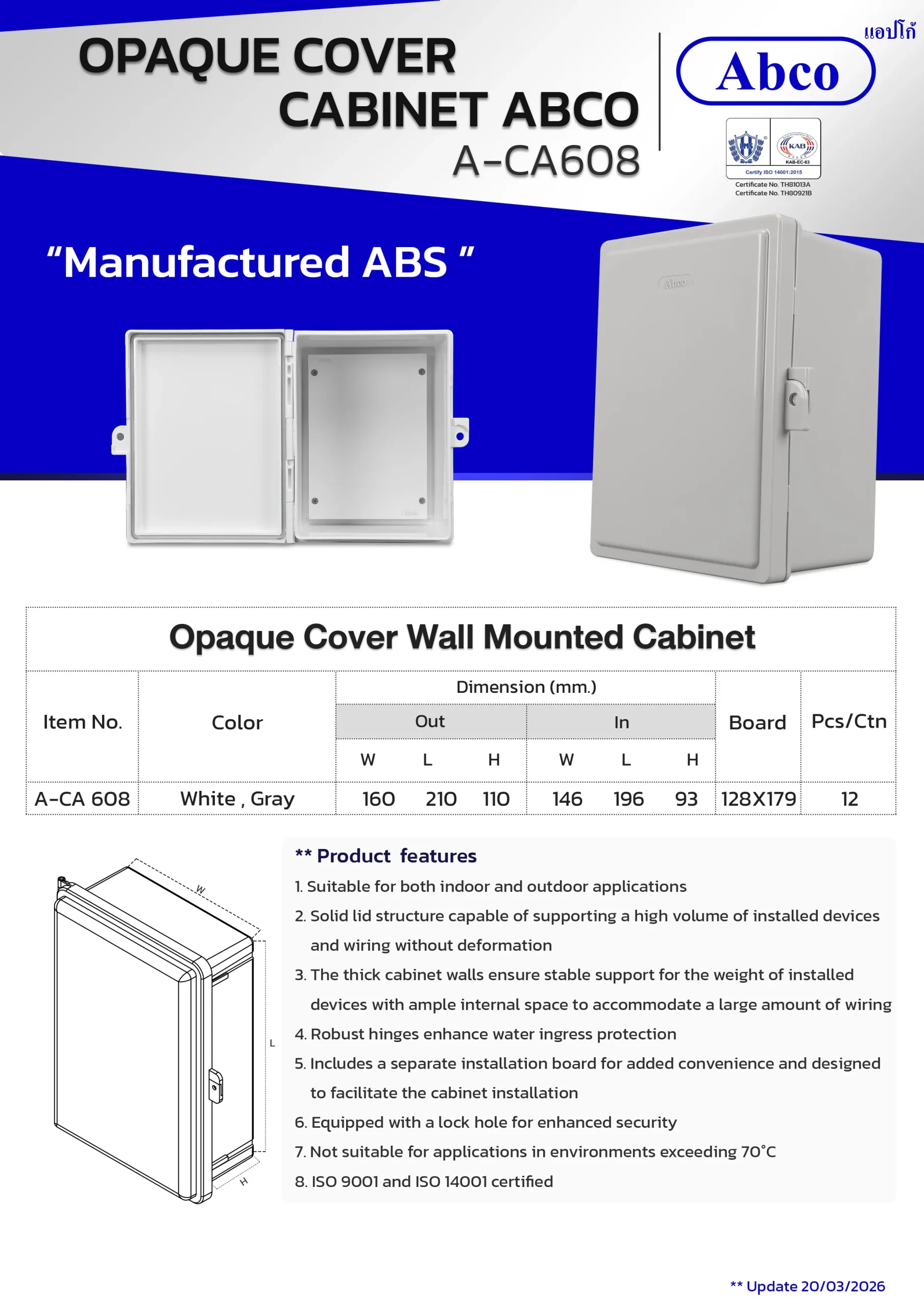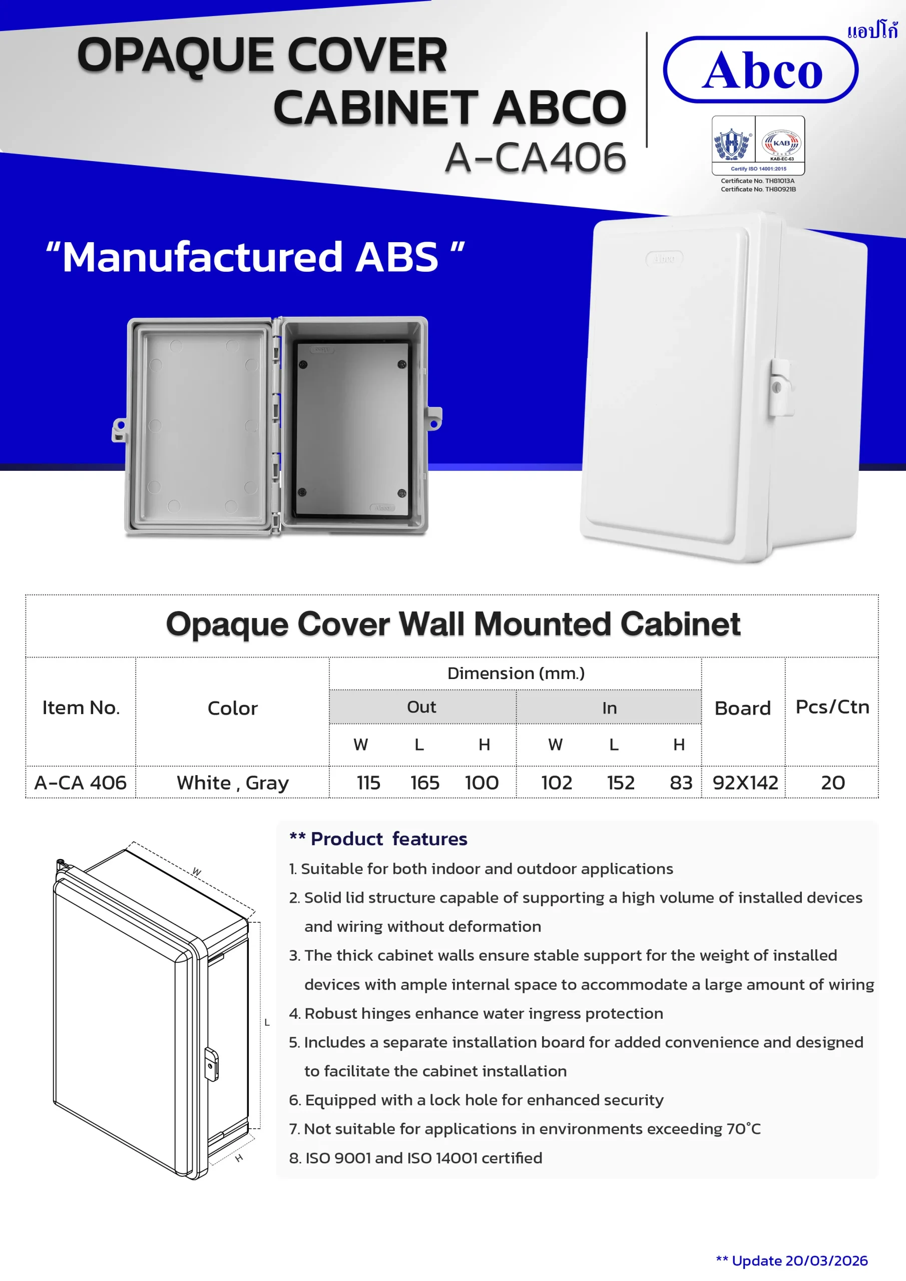 Home / ผลิตภัณฑ์ / Wall Mounted Cabinet / Opaque Cover wall Mounted Cabinet Abco (CA)