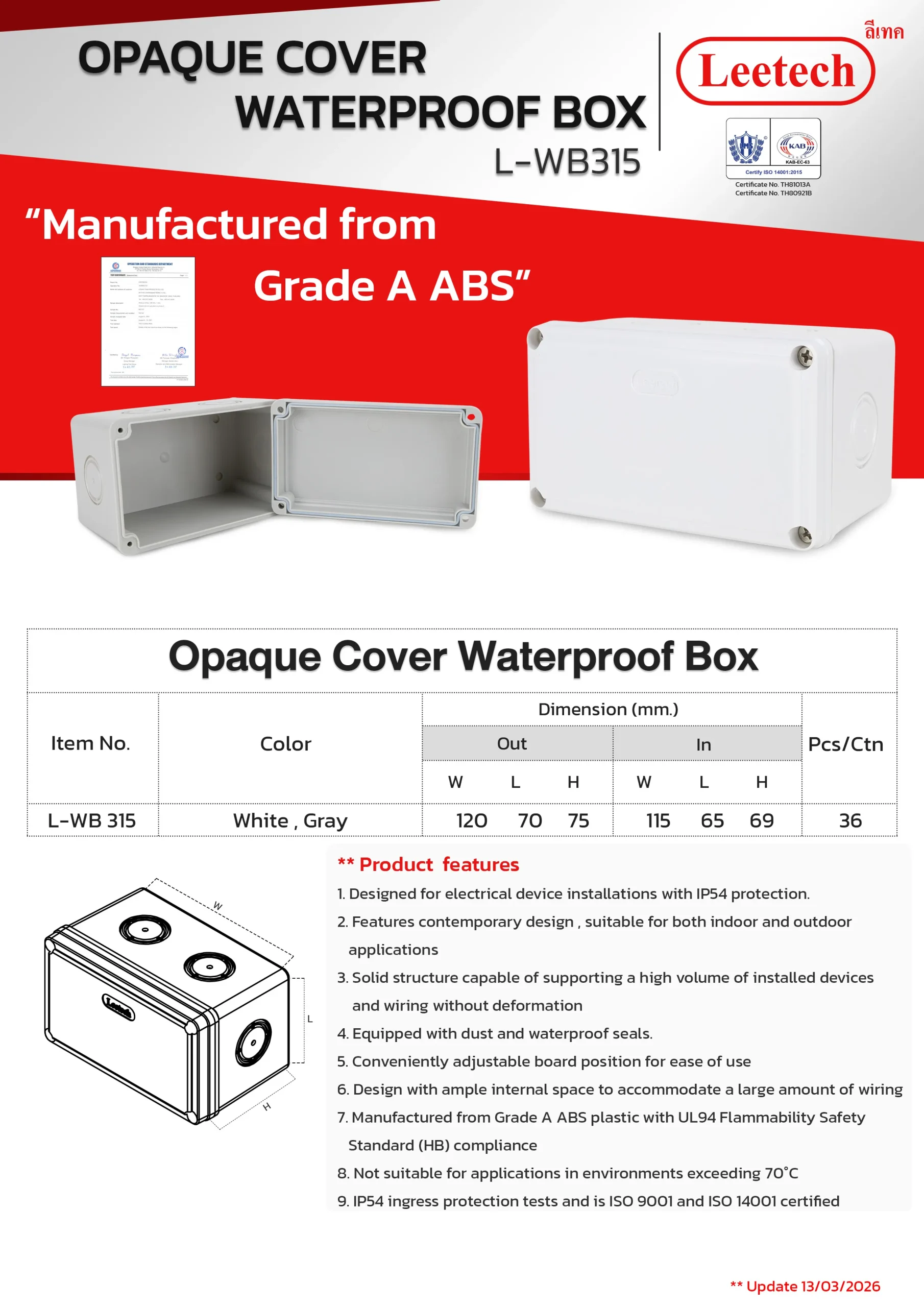 Home / ผลิตภัณฑ์ / Opaque Cover Waterproof box / Opaque Cover Waterproof box (WB)