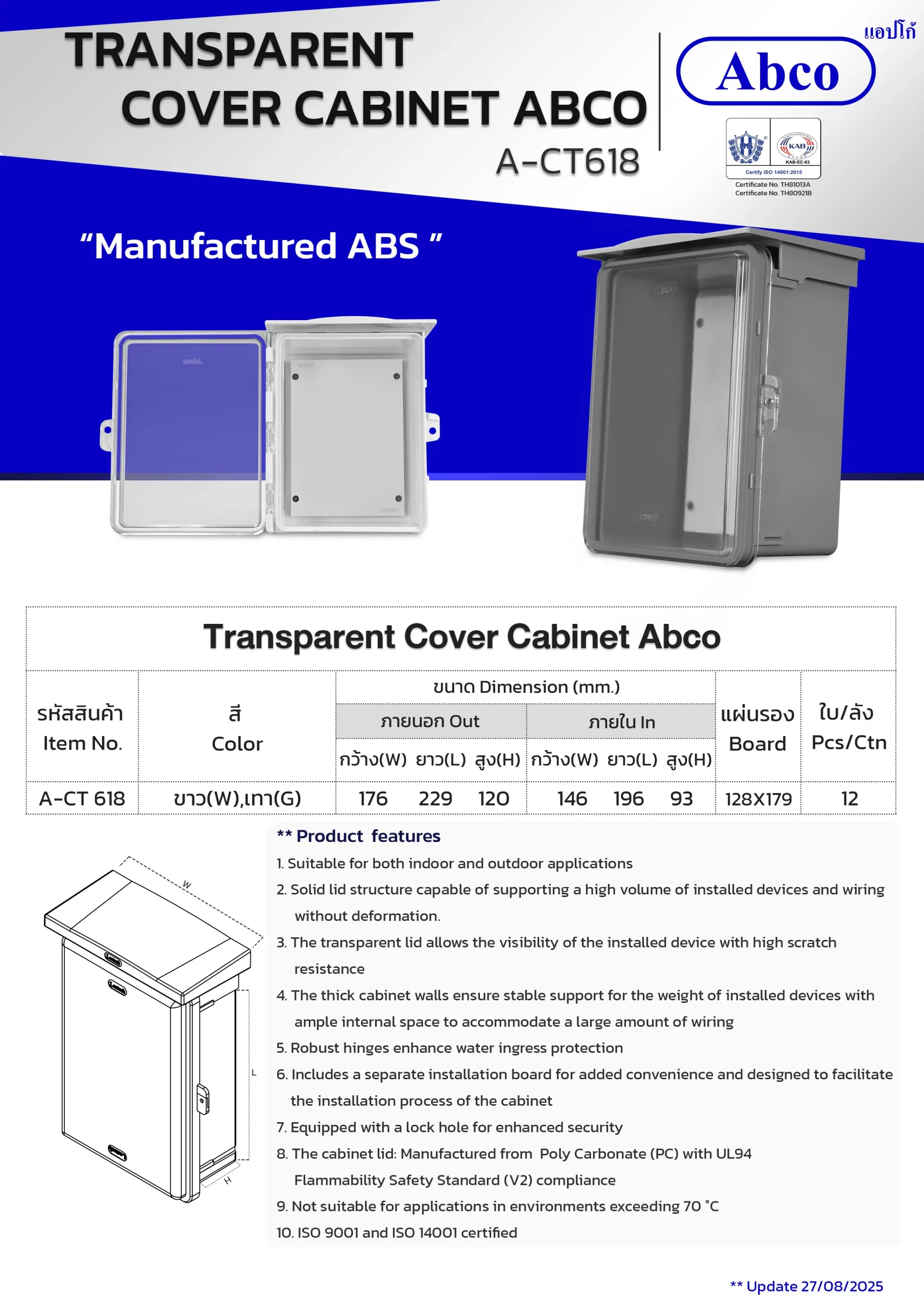 Home / ผลิตภัณฑ์ / Wall Mounted Cabinet / Transparent Cover Cabinet Abco (CT)