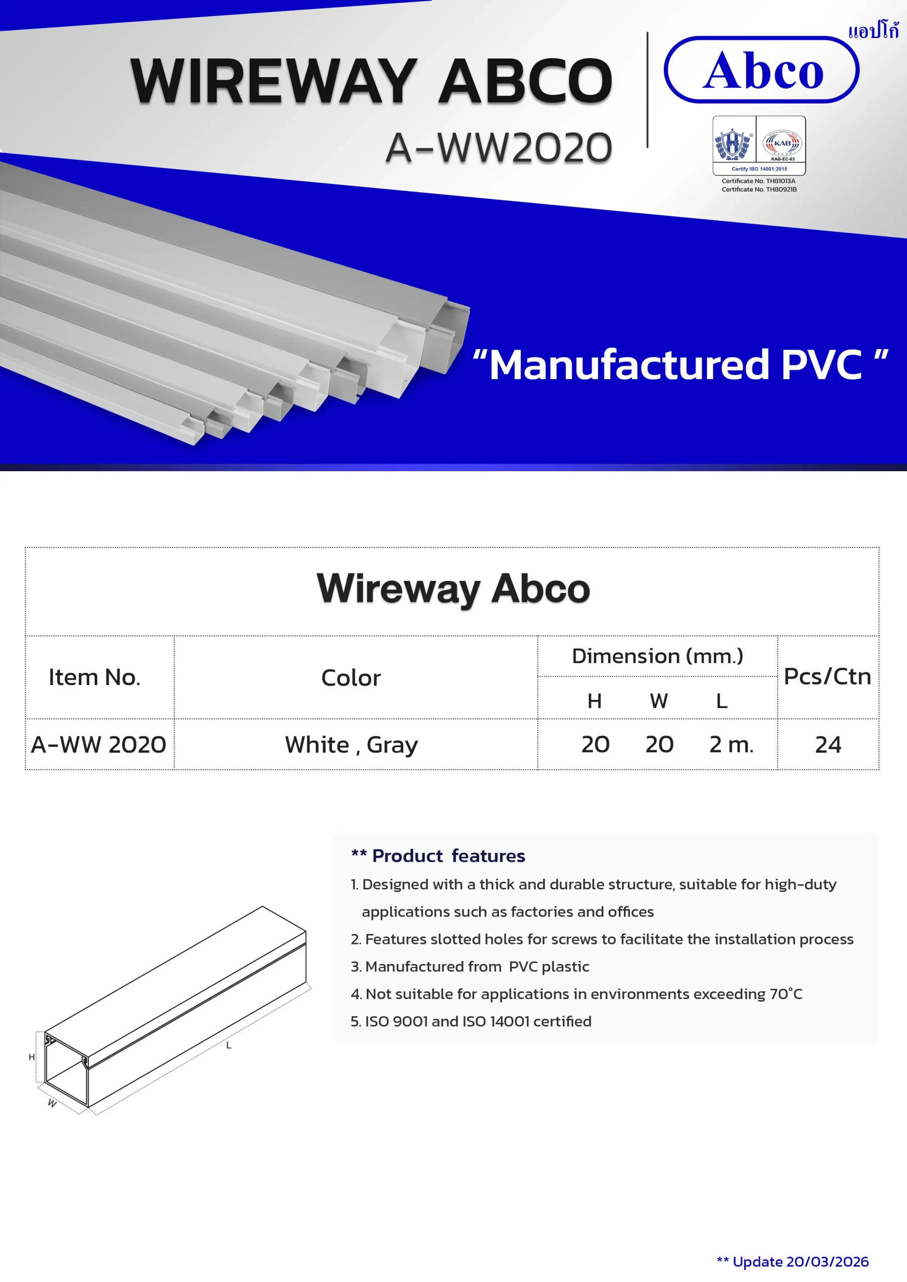 Home / ผลิตภัณฑ์ / PVC Cable Trunking and Equipment / Wireway Abco (WW)