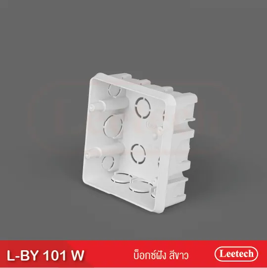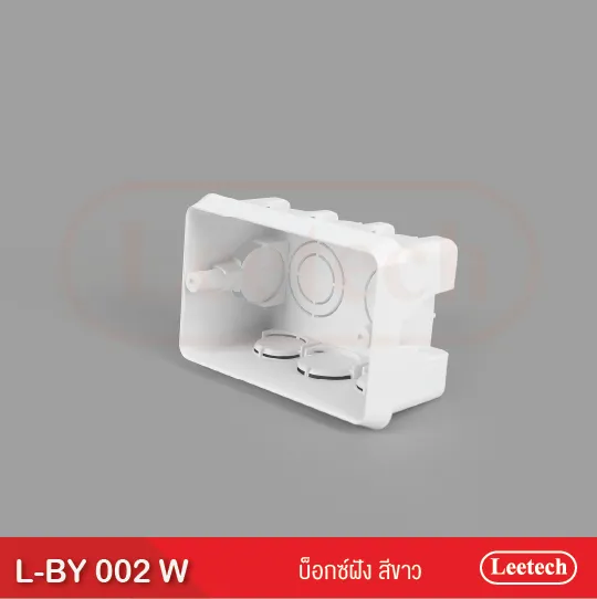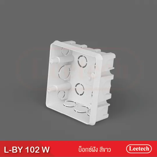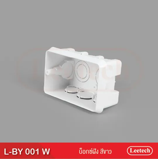 บ็อกซ์ฝัง Leetech ใช้ติดตั้งฝาสวิตช์ และฝาเต้ารับ โดยวิธีเจาะฝังในผนัง ตัวบ็อกซ์ มีความหนา สามารถยึดติดผนังรับแรงดึงได้อย่างมั่นคง ผลิตจากพลาสติก ABS เกรด A มีคุณสมบัติการทนไฟ UL 94 ระดับ HB