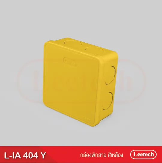 กล่องพักสาย (Junction Box) Leetech ใช้รวมหรือแยกสายไฟฟ้า สายสัญญาณ เพื่อความสะดวกในการติดตั้งภายในอาคาร เหมาะสมกับการติดตั้งด้วยระบบท่อร้อยสายไฟฟ้า กล่องฯ ออกแบบให้มีความแข็งแรง มีระบบฝาล็อคที่แน่นหนา แม้ติดตั้งสายไฟฟ้าภายในกล่องจำนวนมาก กล่องฯสีเหลืองและสีขาวผลิตจากพลาสติก ABS เกรด A
