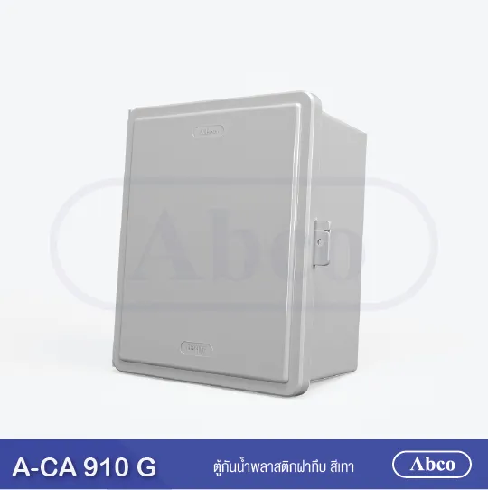 ตู้กันน้ำ ฝาทึบ Abco ใช้สำหรับติดตั้งอุปกรณ์ไฟฟ้าภายใน และภายนอกอาคาร ฝาตู้ป้องกันน้ำ และฝุ่นละออง ตู้กันน้ำฯ ผลิตจากพลาสติก ABS มีความทนทาน และสามารถเจาะยึดอุปกรณ์ต่างๆ ได้ มาพร้อมแผ่นรองอุปกรณ์ภายในชุด เพื่อสะดวกในการใช้งาน ตู้ขนาดใหญ่มีหลังคาสามารถถอดสลับด้านเพื่อความคล่องตัวในการติดตั้ง มีที่ล็อกกุญแจเพื่อความปลอดภัยของอุปกรณ์
