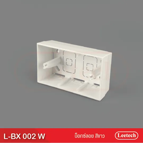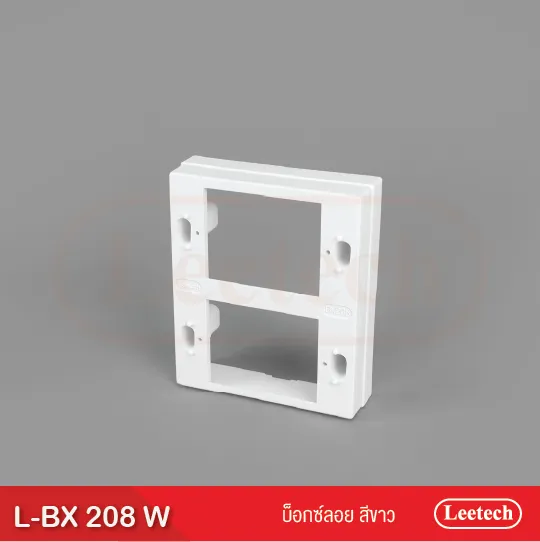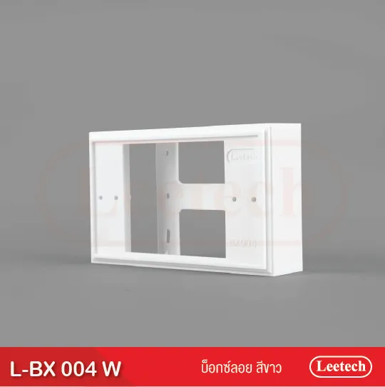 บ็อกซ์ลอย Leetech ใช้ติดตั้งฝาสวิทช์ และฝาเต้ารับ โดยวิธีติดตั้งลอยตัว มีหลากหลายรูปทรงเพื่อเหมาะสมกับฝาสวิตช์รุ่นต่างๆและพื้นที่ติดตั้ง มีทั้งขนาด 2×4 และ 4×4 ตัวบ็อกซ์ลอย มีความหนา สามารถขันสกรูยึดฝาสวิตช์ติดผนังได้อย่างมั่นคง ผลิตจากพลาสติกเกรด A